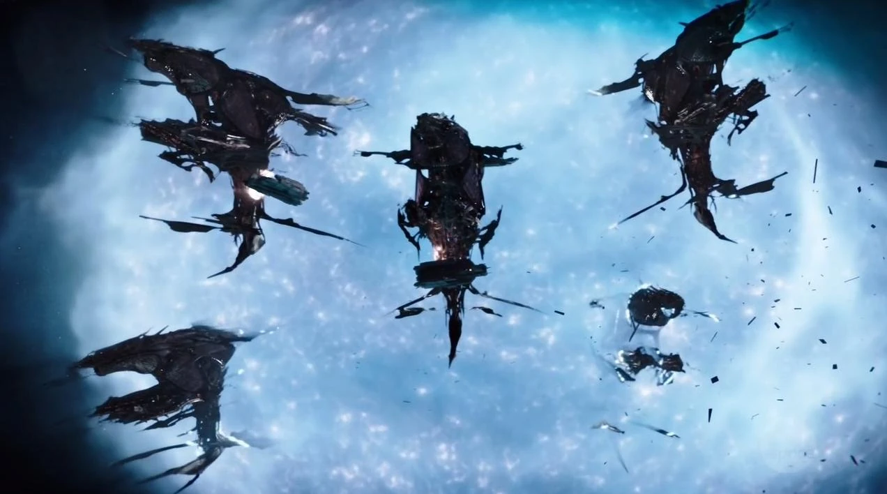 Sur la passerelle Ryo, Wexler et Cinq examine l'anomalie spatiale ayant remplacé l'espace occupé par la station mais sous leurs yeux horrifiés émergent de cette anomalie de noirs vaisseaux menaçants pour tous. Les vaisseaux noirs dont Androïde a entendus parler dans sa vision du future.