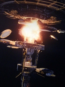 Ferrous Corp attempted to bomb the station with an illegally modified android. However, Five managed to appeal to the android's emotions, which in turn caused the Android to space itself to save the lives of the delegates. Nevertheless, EOS-7 turned out to not be saved as Emperor Ryo Tetsuda had his men overload the station causing massive explosions.