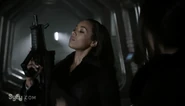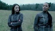 In Episode Fourteen, Three gets into a fight with people from his past, however, Nyx steps in and defends him only for her to demand his Ration card herself. Two steps in and defends Three. Two fights with Nyx and both are soon incapacitated by head guard Durand. They're both put in solitary and both hang out in the Sim Yard where they became allies.